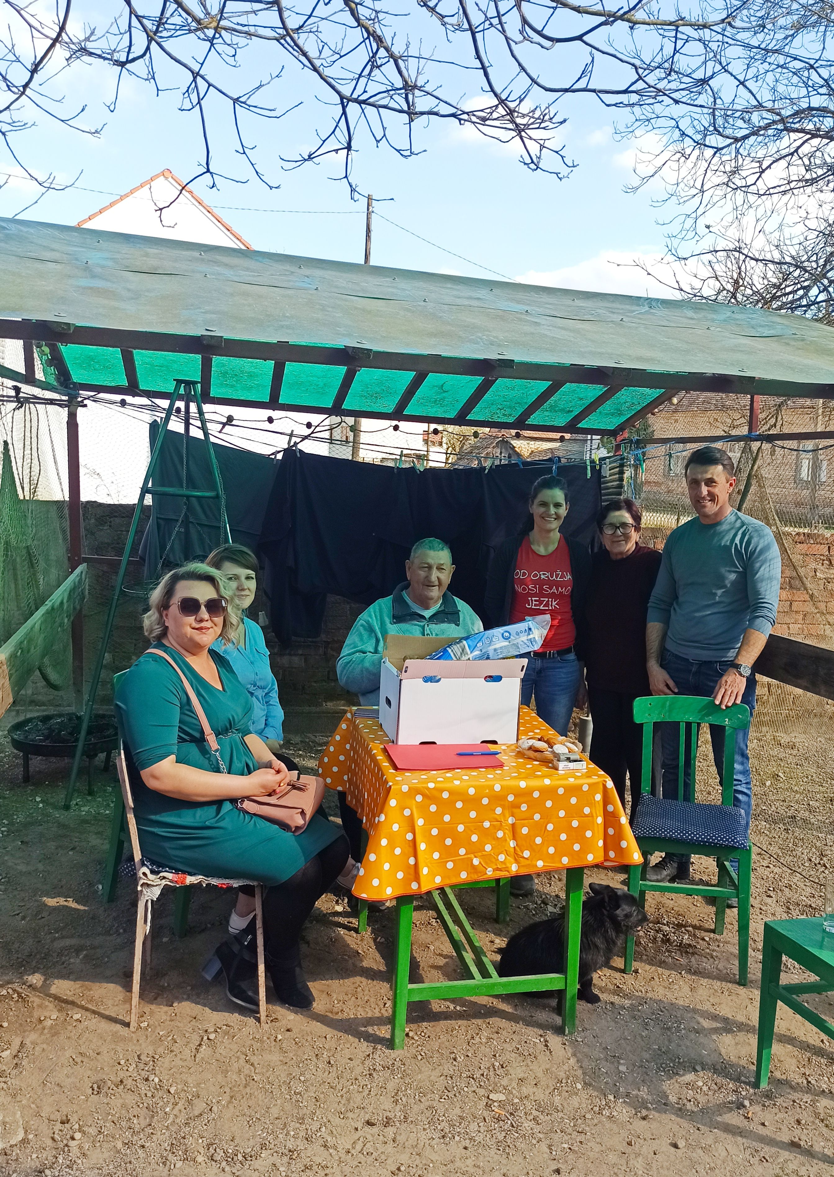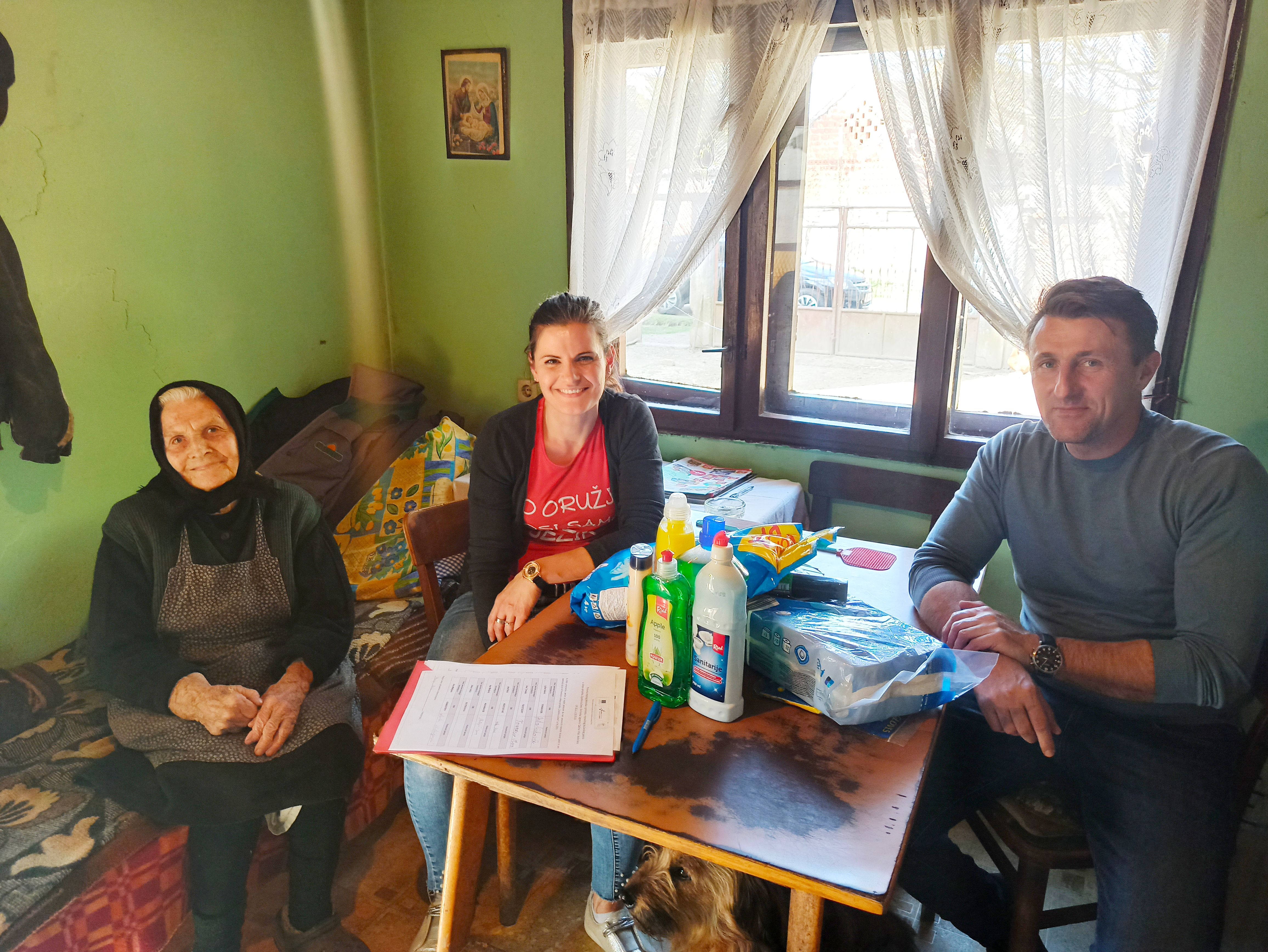 Zahvaljujući uspješnom i predanom radu naših gerontodomaćica, ovaj trojac bezbrižno je uživao u podjeli paket i ćaskanju s mještanima, bez straha od negativnih kritika.